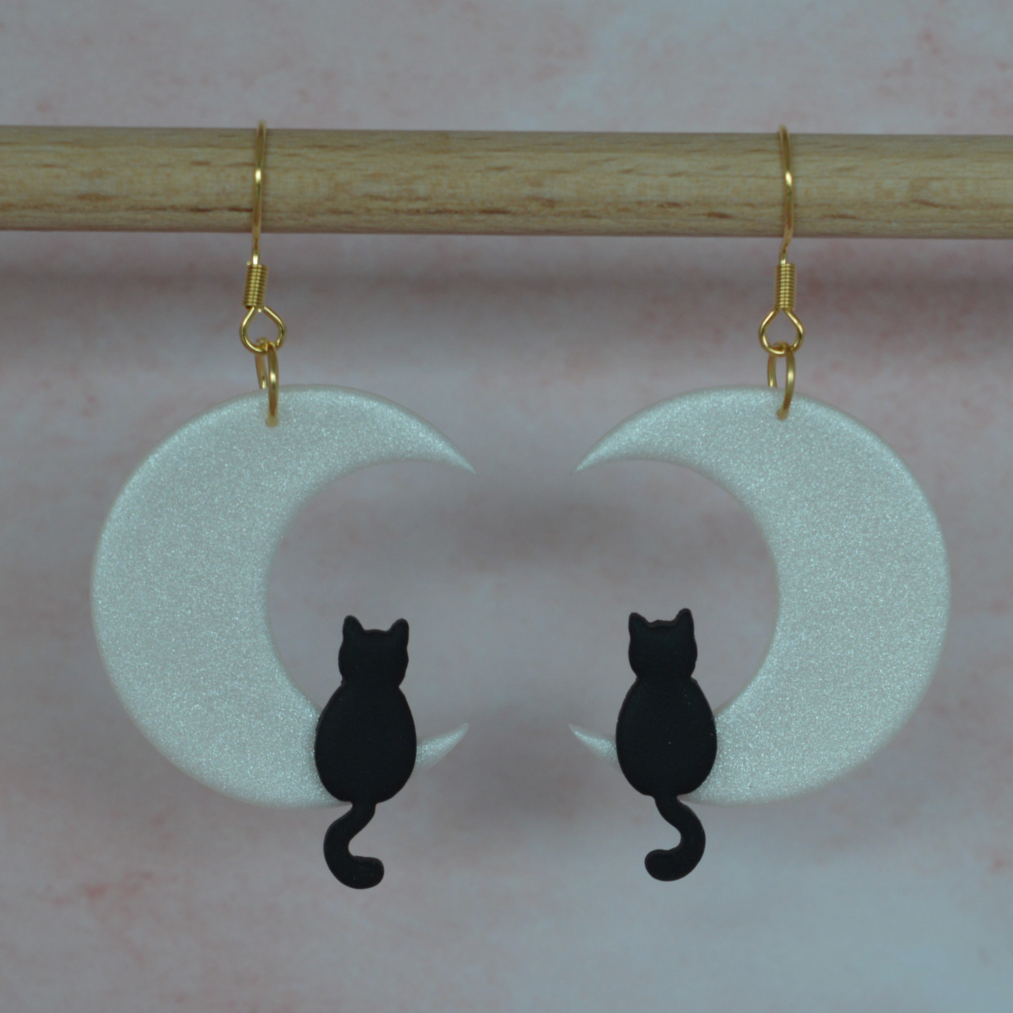 Laat je betoveren door de mysterieuze charme van de Cat in the Moon oorbellen. Het elegante silhouet van een kat tegen de glanzende maan straalt zowel mysterie als verfijning uit. Perfect voor wie houdt van een vleugje magie in zijn stijl.