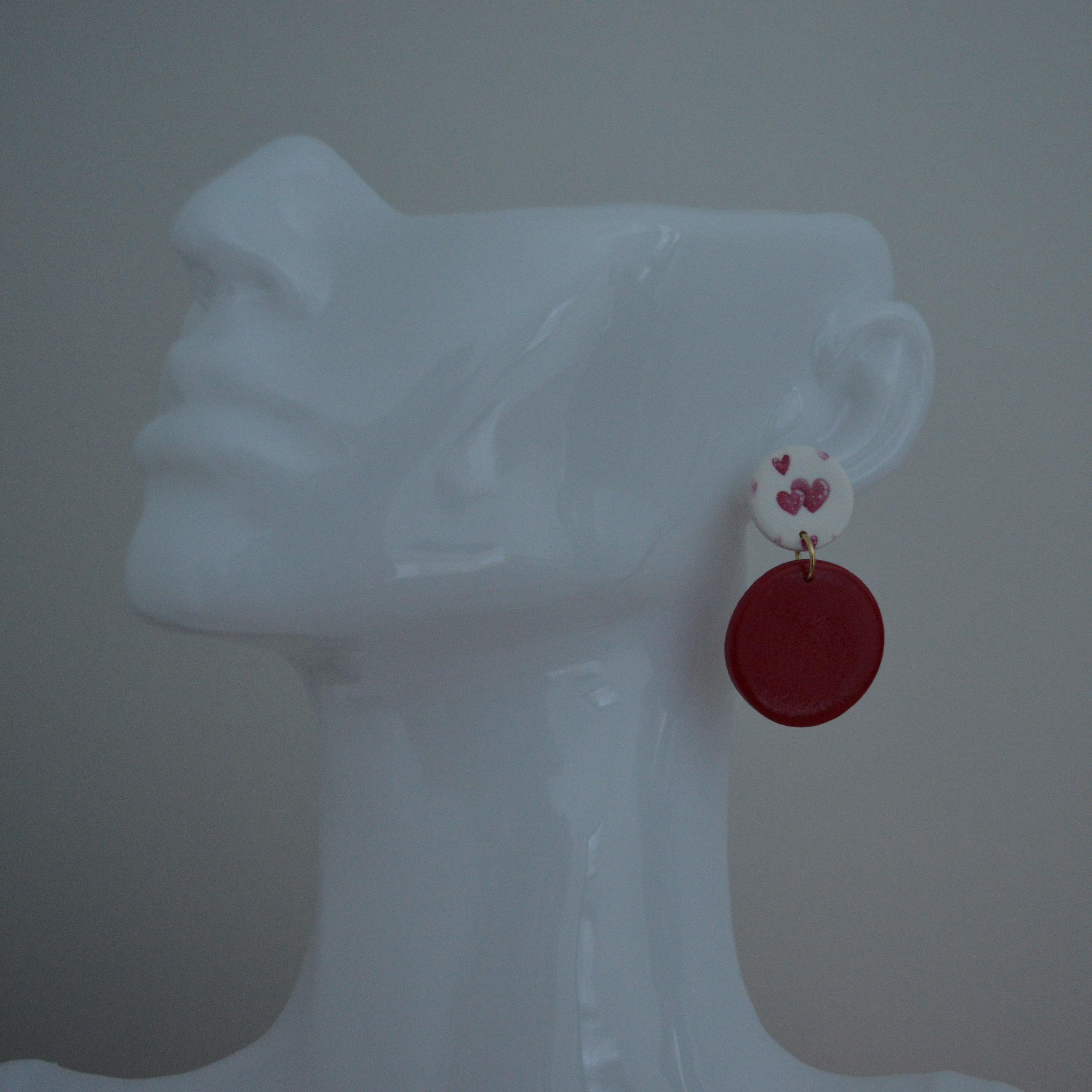 Circle Charm - Cupid red combineert zachte romantiek met een warme uitstraling. De fijne hartjesprint in zachte roodtinten vormt een prachtig contrast met de diepe rode cirkelhanger. Een elegant en speels paar oorbellen dat liefde fluistert in plaats van schreeuwt - perfect voor elke dag of een bijzonder moment.