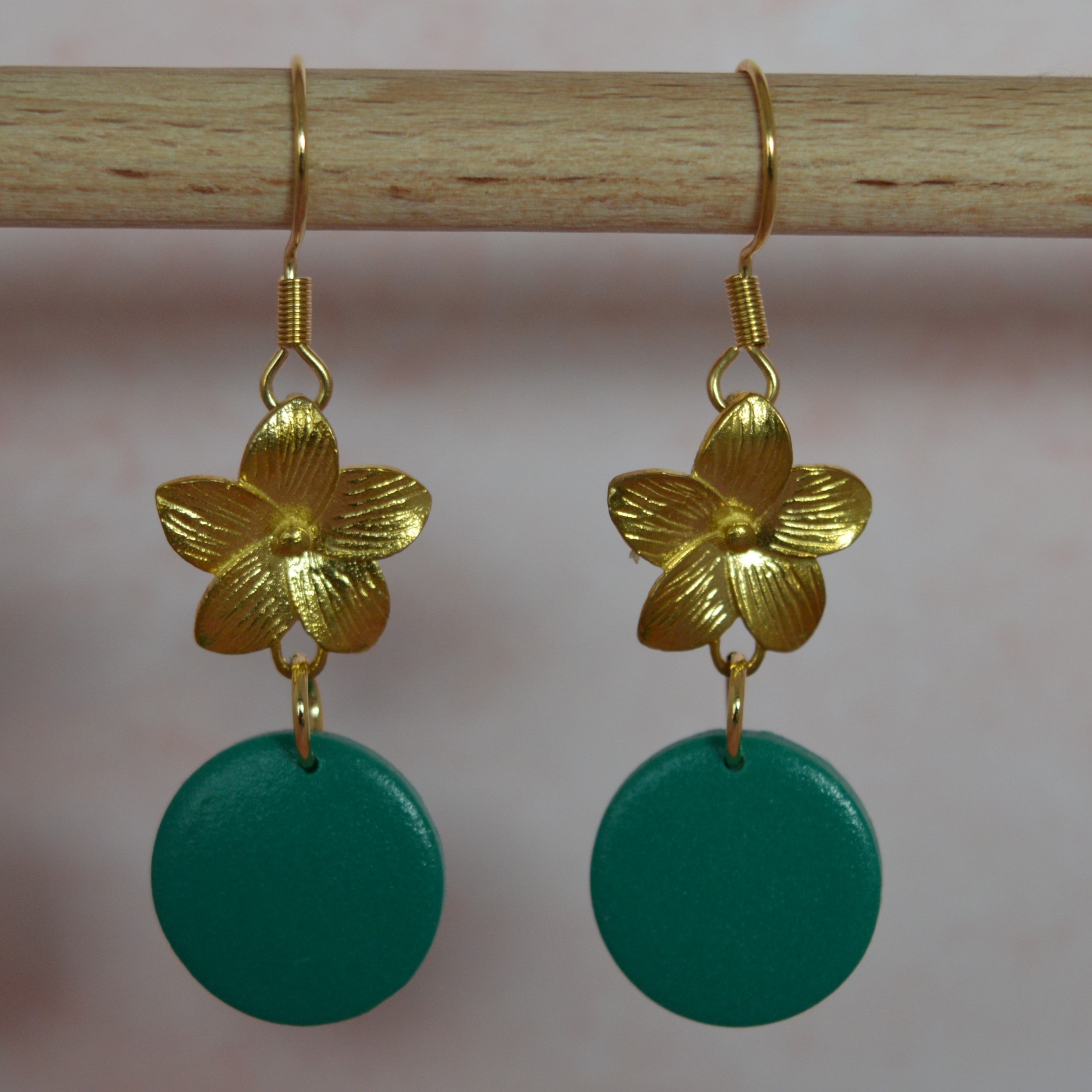 Een verfijnde combinatie van een gouden bloem en een zachte ronde hanger. Deze oorbellen stralen tijdloze elegantie uit en geven elke look een vleugje romantische charme. Handgemaakt voor stijlvolle momenten, elke dag opnieuw.