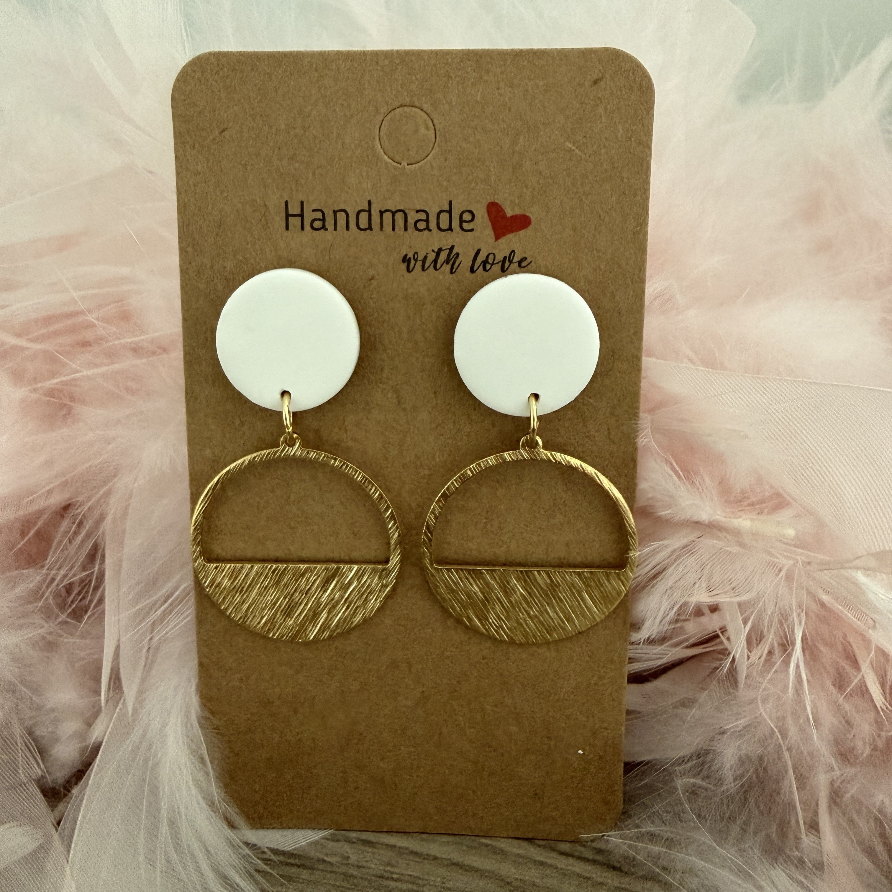 Fris wit in combinatie met een gouden halo voor een zachte, winterse uitstraling. Deze oorbellen brengen een rustige, luxueuze kerstsfeer naar elke outfit. Licht, verfijnd en ideaal voor wie houdt van minimalistische holiday sparkle.