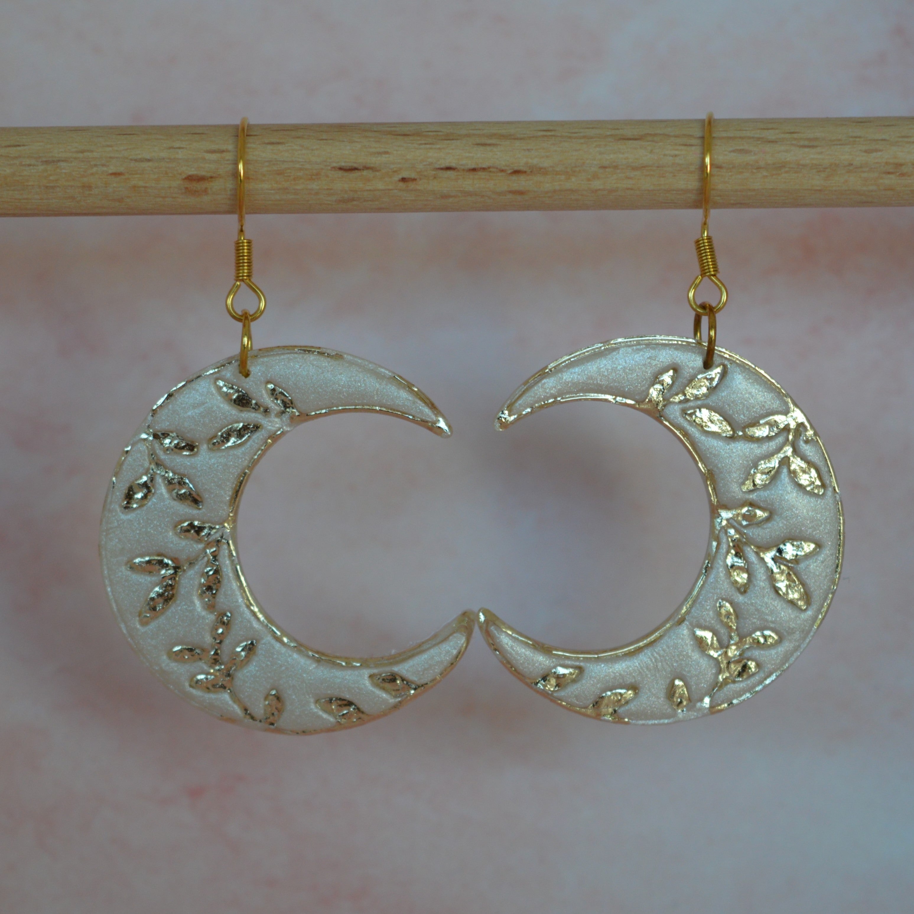 Laat je betoveren door de zachte elegantie van deze maanvormige oorbellen. Hun vloeiende lijnen en subtiele details stralen mystiek en tijdloze schoonheid uit. Een verfijnd statement dat elke look een vleugje magie geeft.