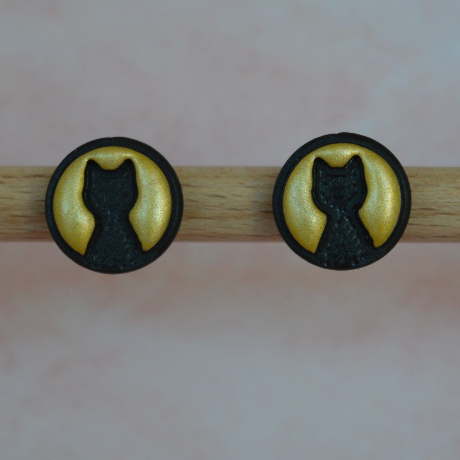 Een silhouet tegen een gouden maan – mysterieus en elegant. De Midnight Familiar studs brengen een vleugje magie in je look, perfect voor nachtdieren en kattenliefhebbers.