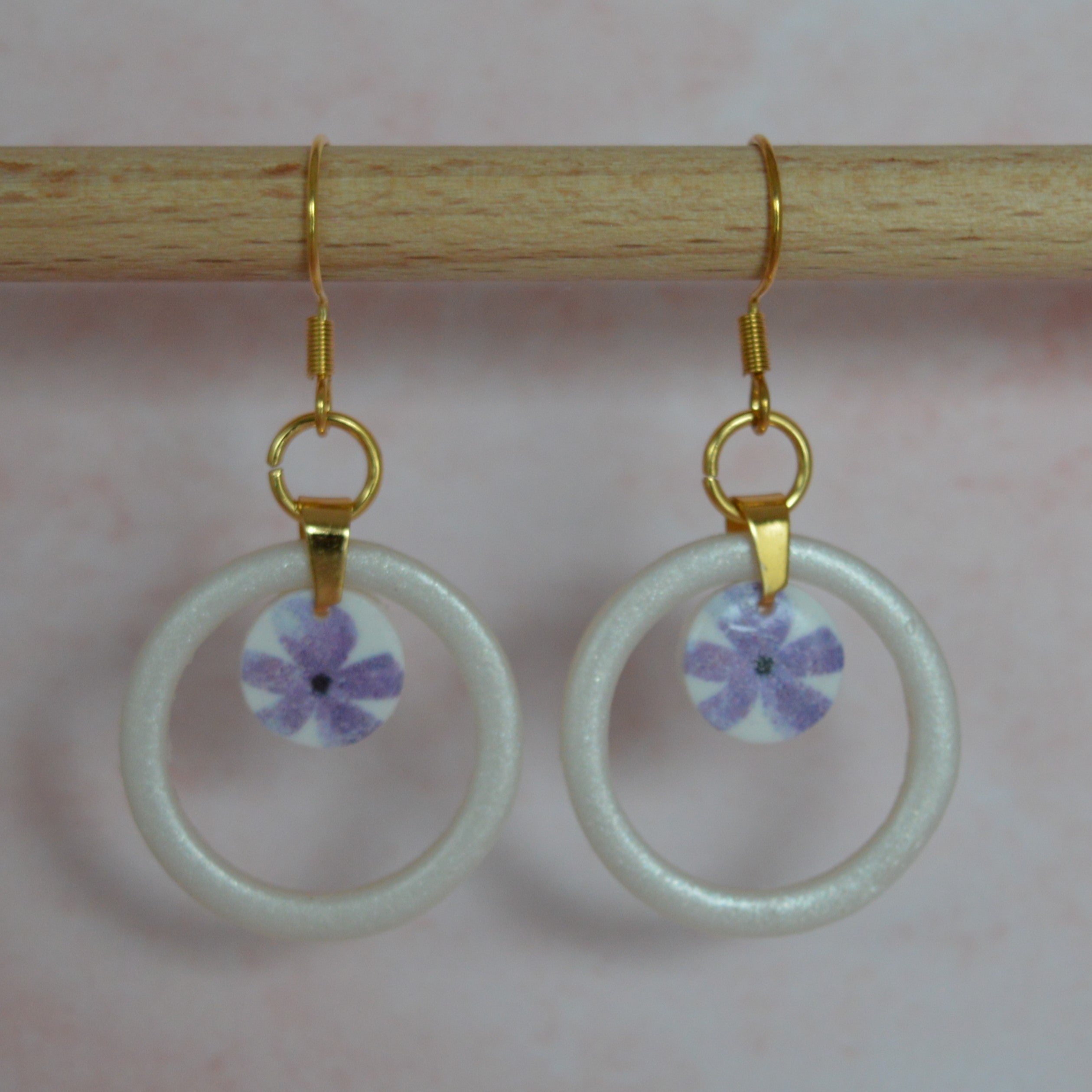Speels en verfijnd, deze oorbellen combineren de zachte elegantie van de cirkel met een subtiel bloemdetail. Handgemaakt en uniek, perfect om je look een charmante en tijdloze touch te geven.