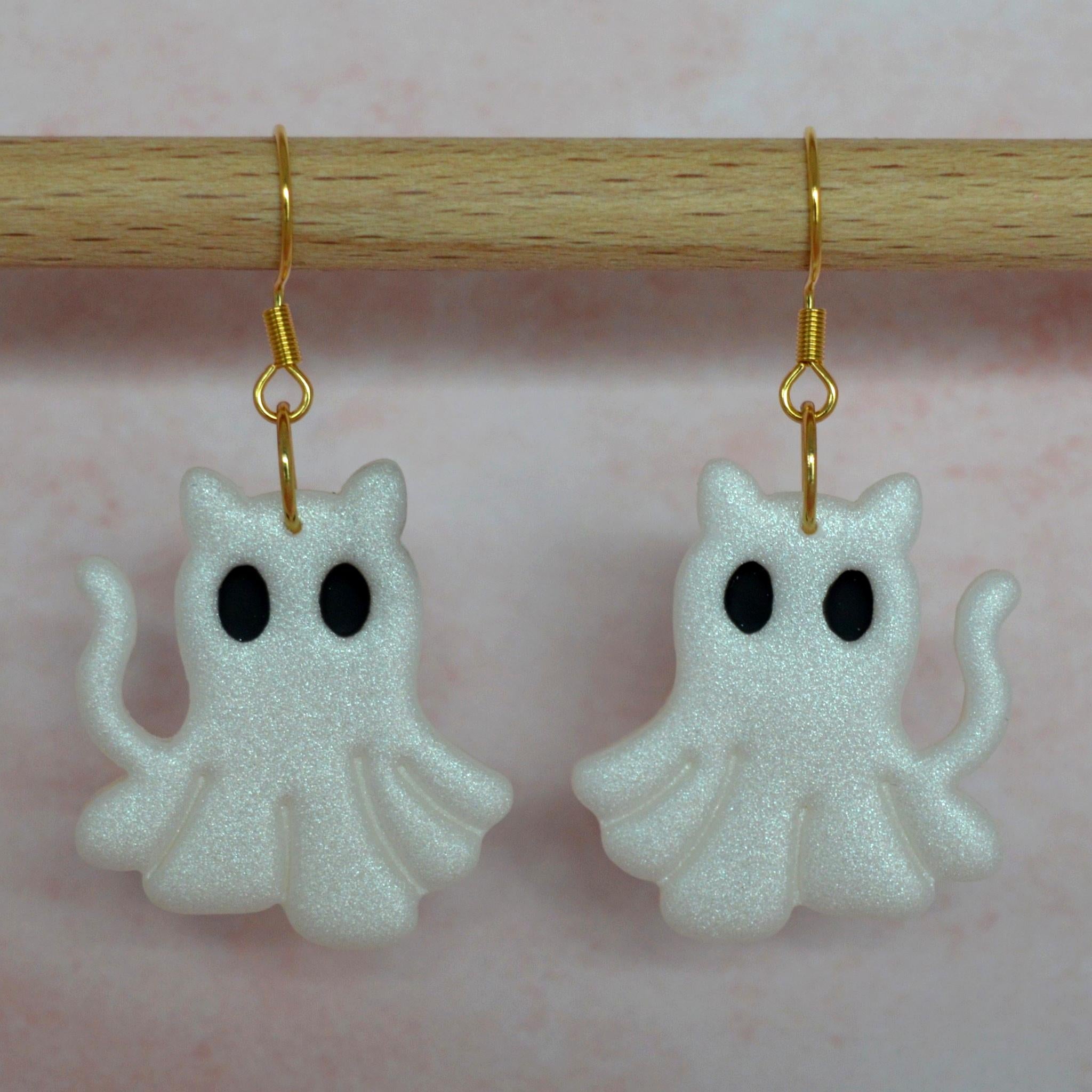 Laat je Halloween-look tot leven komen met deze speelse spookkat-oorbellen. Handgemaakt met oog voor detail en een subtiele glans, brengen ze een vleugje mysterie en charme in elke outfit. Perfect voor wie houdt van een elegante maar speelse spooky vibe. 👻
