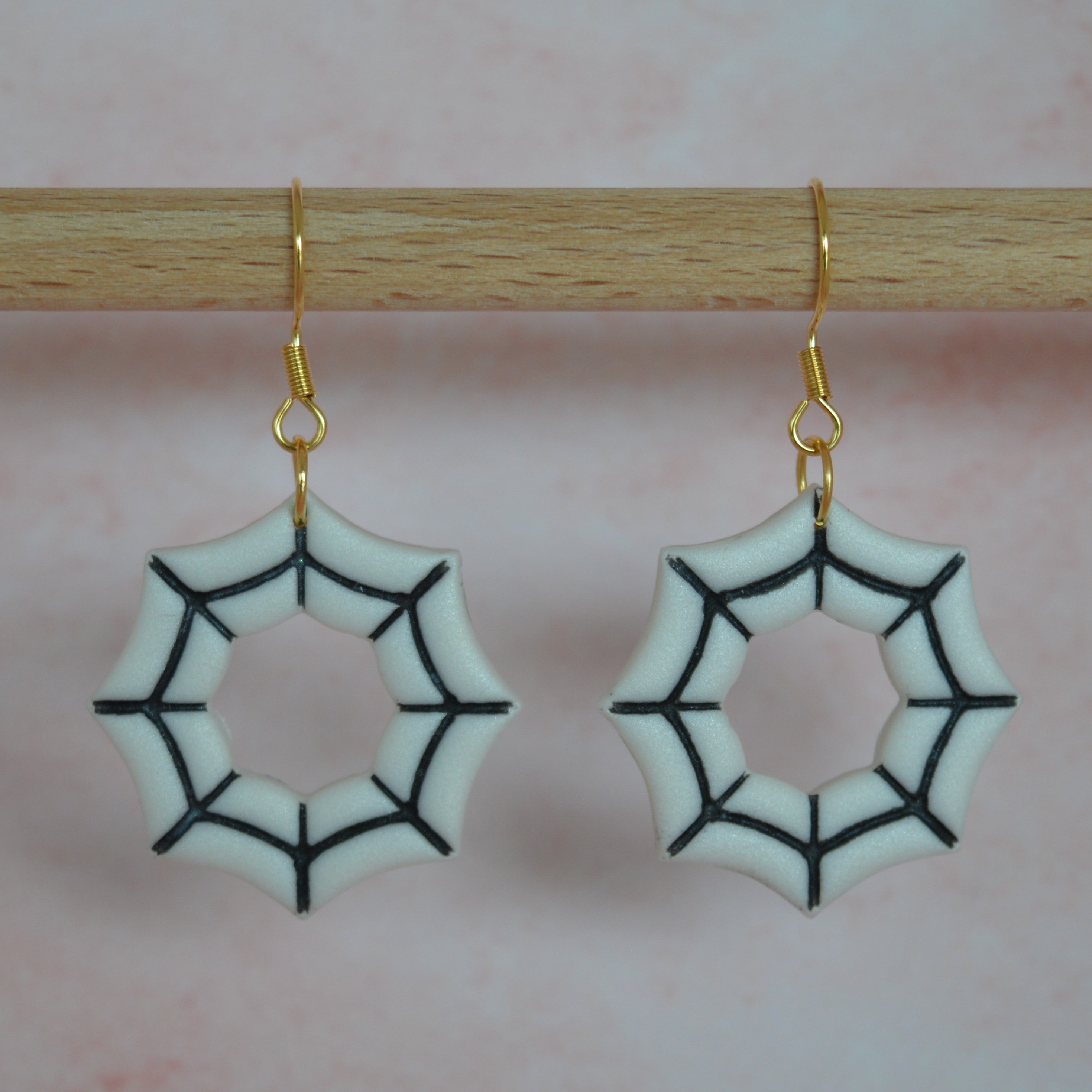 Laat je betoveren door deze unieke oorbellen die geïnspireerd zijn op het mysterieuze patroon van een spinnenweb. Perfect voor een speelse en spookachtige toets, maar toch elegant genoeg om elke outfit te versterken. Ideaal voor wie van originele en handgemaakte details houdt.