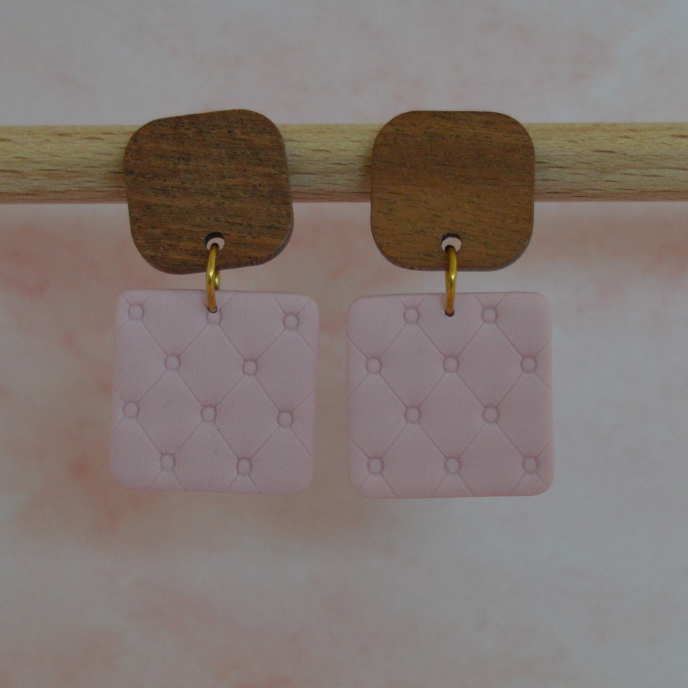Deze oorbellen hebben een zacht doorgestikt motief dat doet denken aan luxe stoffen en elegante details. De ronde vorm in zacht roze krijgt extra verfijning door de gouden ring - subtiel, tijdloos en toch bijzonder.